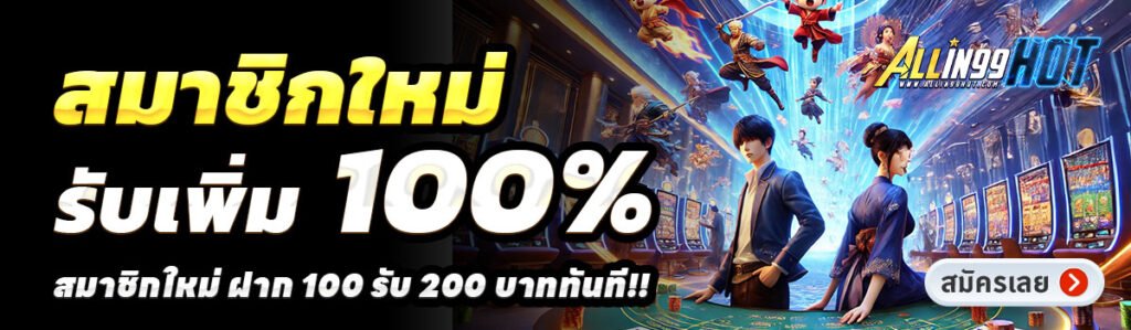 สำหรับคนที่กำลังมองหาเว็บเล่นสล็อตออนไลน์ที่ทั้งคุ้มและแตกง่าย ALLIN99HOT อาจเป็นคำตอบที่คุณกำลังตามหา ด้วยโปรโมชั่นสุดพิเศษสำหรับสมาชิกใหม่ ฝากเพียง 100 บาท รับไปเลย 200 บาททันที พร้อมโบนัสเพิ่ม 50% ในทุกยอดฝากแรกของวัน นี่คือโอกาสที่จะช่วยให้คุณเริ่มต้นการเล่นสล็อตด้วยทุนที่มากขึ้น และเพิ่มโอกาสในการทำกำไรได้จริง